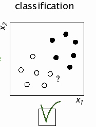 Example: categorization (given \(size\) and \(color\), predict \(crunchy/mushy\)).